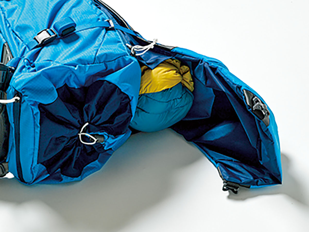 夏山の縦走やアルパインクライミング、スキーツーリングまで幅広く使えるよくばりなモデルです。容量は最大40リットルまで拡張することができます。本体には2種類の生地を使うことで、軽さと耐久性の両立を実現。背面は通気性も考慮したデザインです。