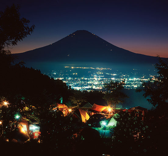 都心からアクセスしやすいキャンプ場。テントサイトおよびコテージから、存在感のある富士山と御殿場市街が一望できる。夜は夜景と富士山を堪能することも。すべての区画に電源を完備し、隣接する「フォレスト乙女」内には、眺望のよい乙女峠まで続くハイキングコースがある。