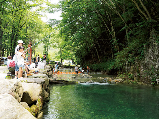 澄みきった清流と雄大な自然のなかで釣り三昧
