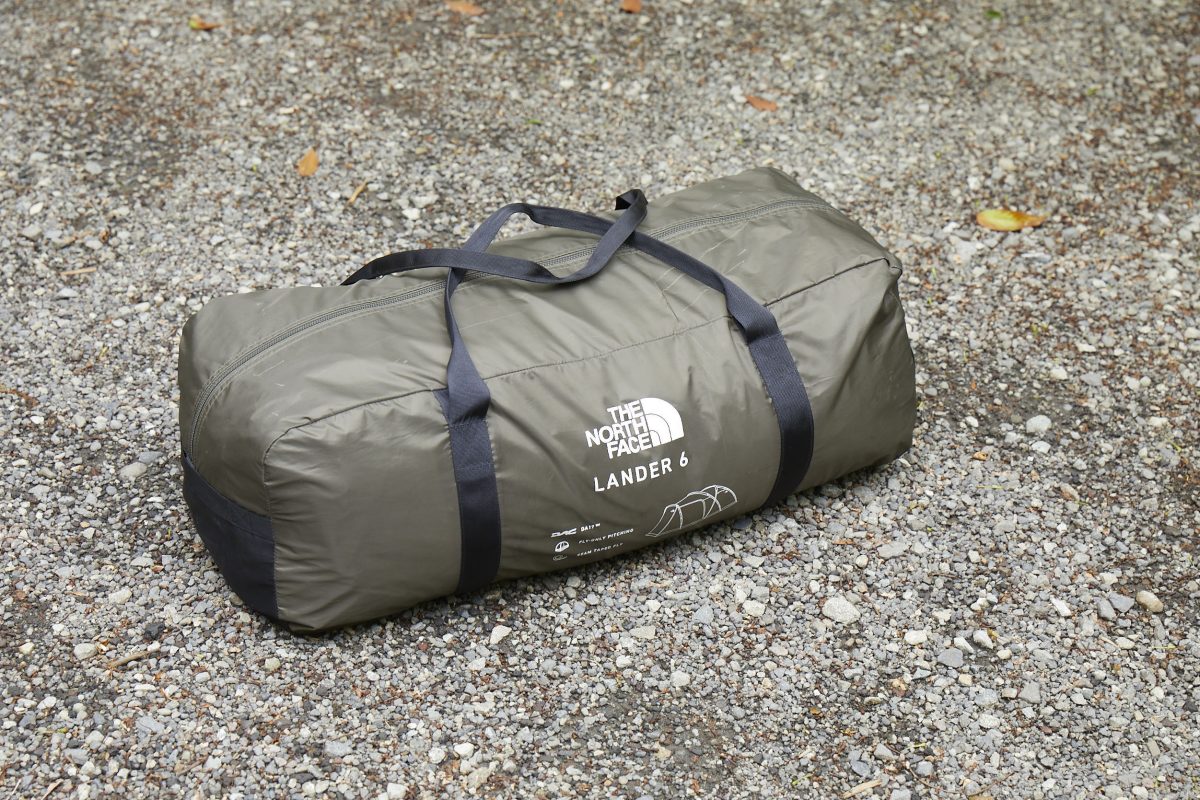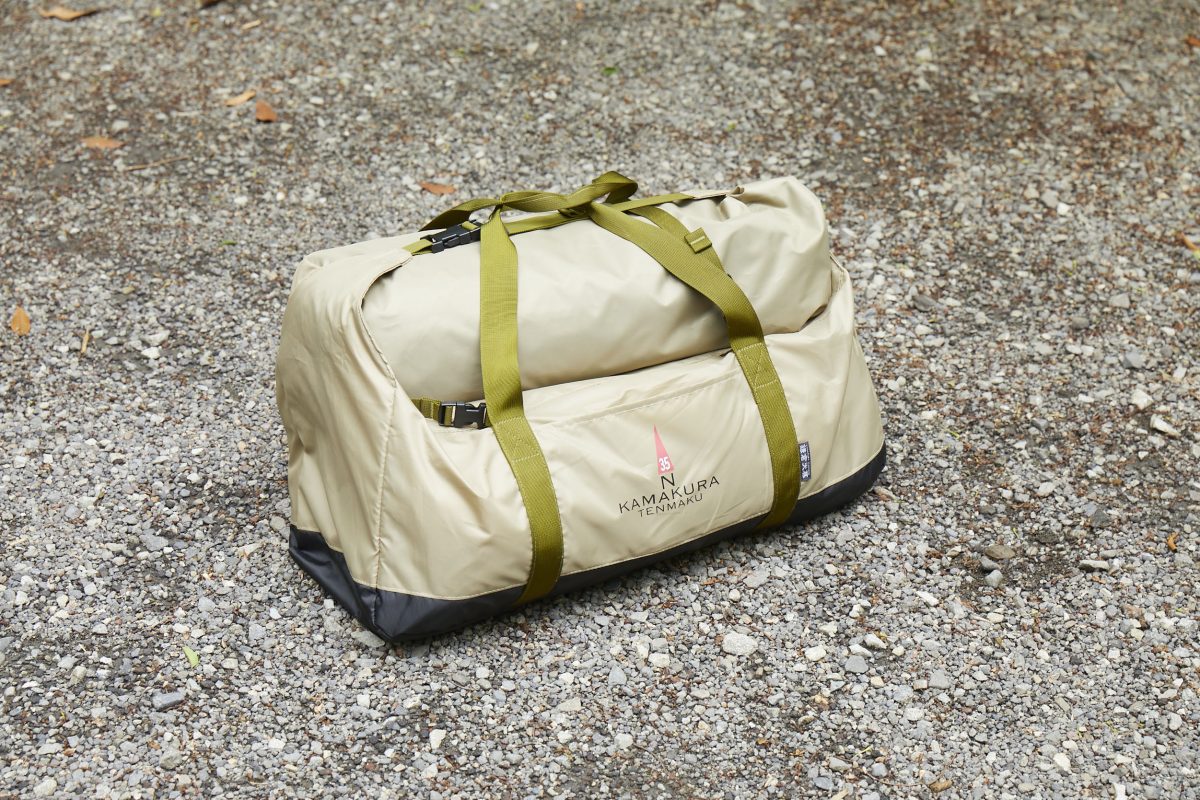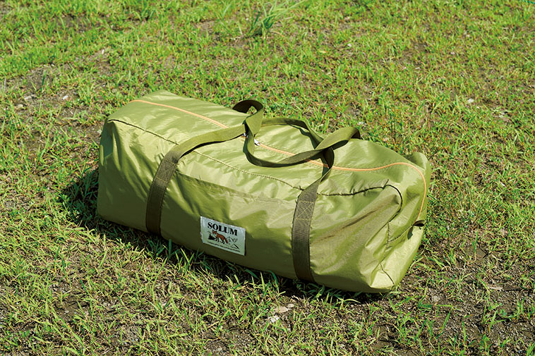 テントサイズに比べると割と余裕をもった、横幅が82㎝もある収納袋が付属。ラフな撤収でも問題ないのは、時間に追われがちなファミリーキャンプでは役立つ