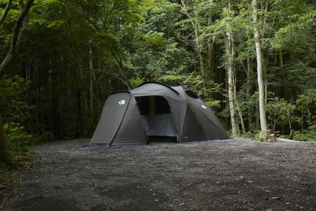 ザ・ノース・フェイスが送り出す、オートキャンプ向けの6人用2ルーム。同社の名作テント「カイジュウ」や「ワオナ」を思わせるフォルムながら、前室のフロントパネルをキャノピー状にせり出せる点が異なり、さらに広々としたリビングスペースを設営できる。