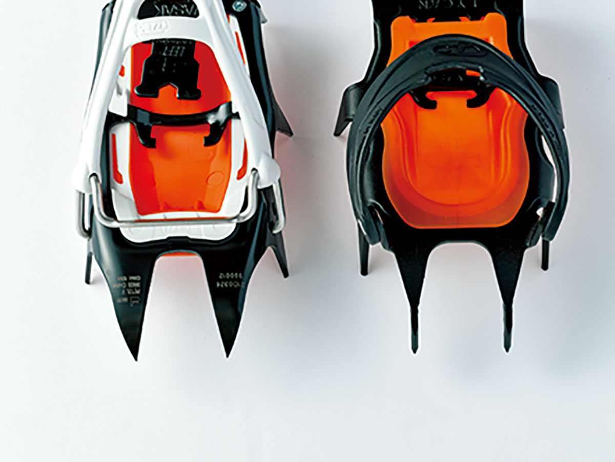 雪山のクランポンは12本爪以上が基本とされています。しかし足の小さな女性が、12本爪のクランポンを靴に合わせようとすると、つま先とかかと側のパーツの間隔が詰まりすぎてしまうことも。