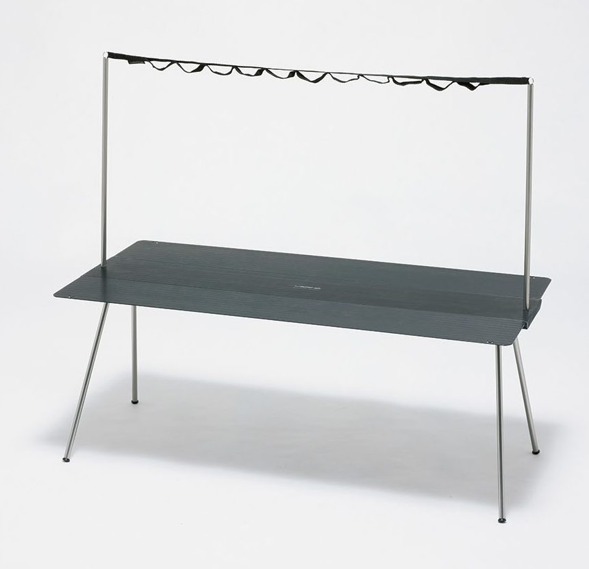 ブランドの人気アイテムであるタフメッシュテーブルと3ハイ&ローテーブルをハイブリッドさせた一台。高さ調節ができ、ラフに使えるメッシュ天板なので作業スペースとしても◎