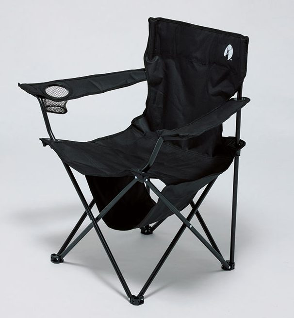 折りたたみ式チェアながら重厚感ある座り心地が特徴のキャンプチェア。樹脂製のアームレストには可動式のカップホルダー、背面にはポケットが付くなど使い勝手も申し分なし。