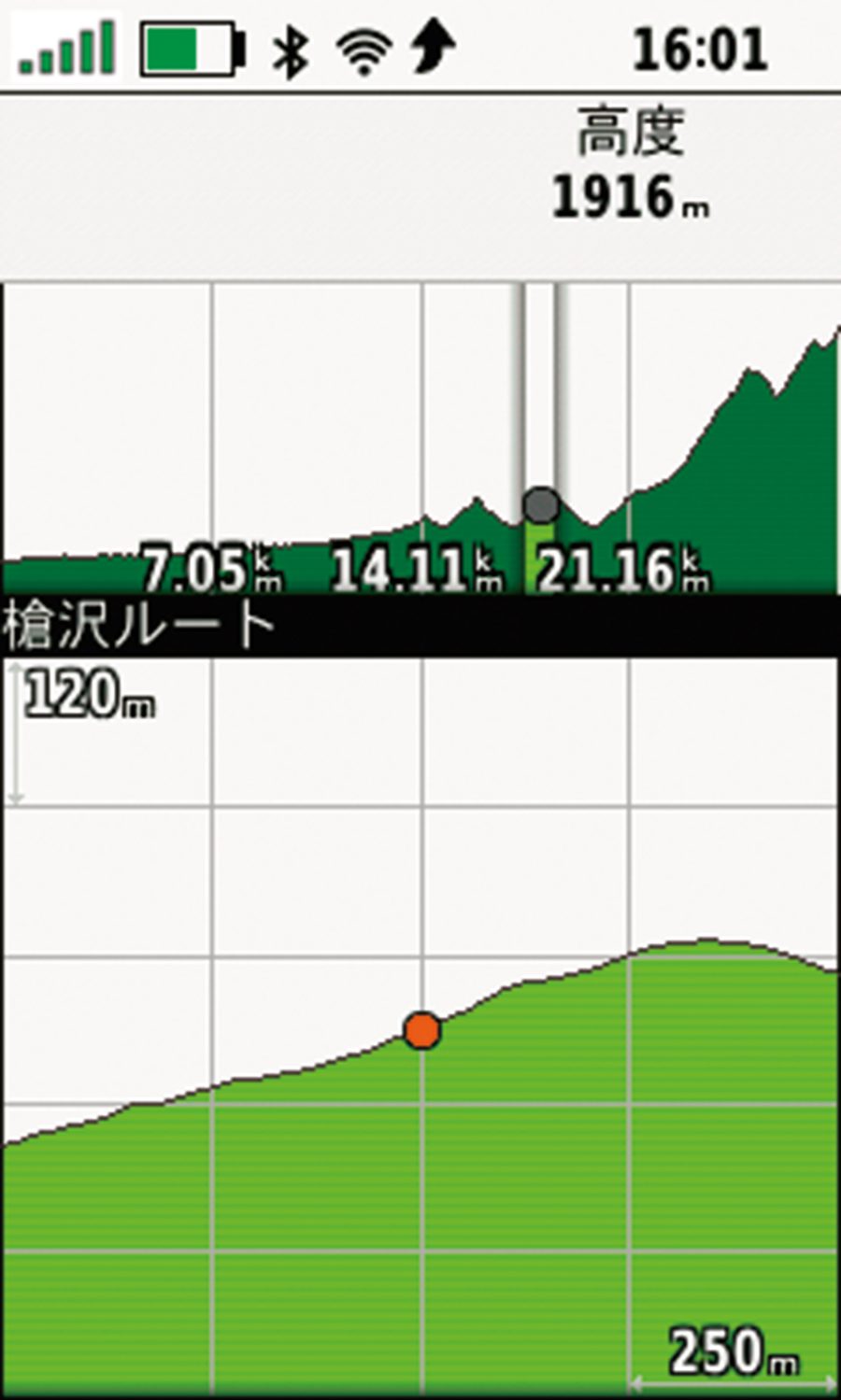 気圧高度計を搭載しており、ルートを取り込んでおけば山行の高低図が見られる。また停滞時に定点で気圧変化を確認すれば天気の予測にも役立てられる。