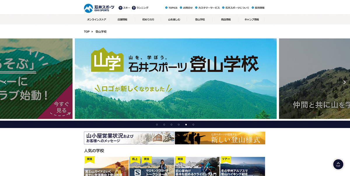 登山用品専門店「石井スポーツ」が主催する登山学校。地図読み講習会は一年をとおして実施している。関東で開かれる講習会は主に奥武蔵をメインフィールドにしており、道標などが過剰に整備されていないハイキング道やオリエンテーリングの常設コースなどを利用して、進路決定や尾根谷の地形把握を行なうことで、受講者に地図を“見る”から“読む”ことを習慣づけるように工夫されている。