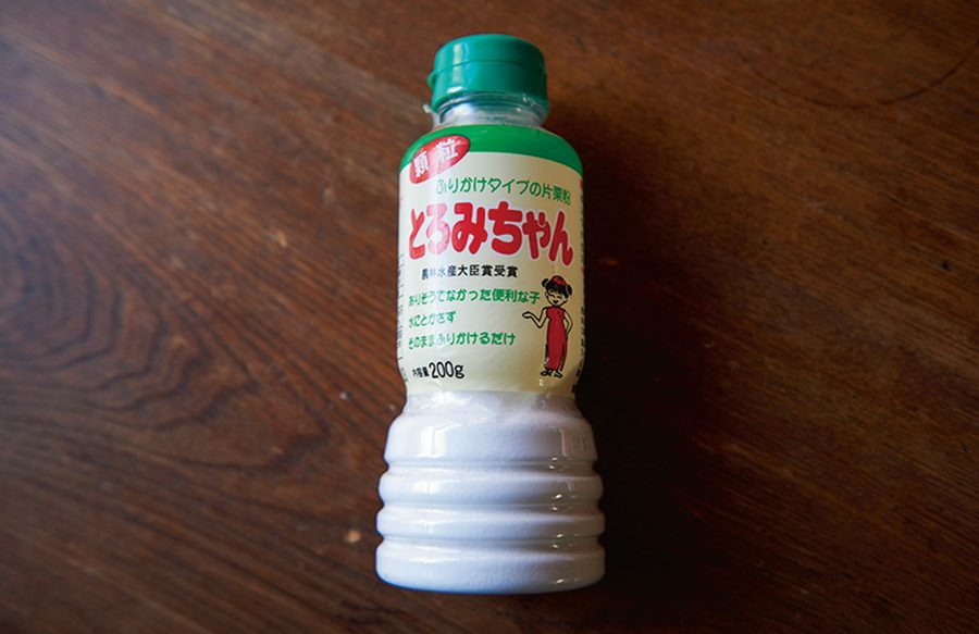 どこのスーパーでも、場所によってはコンビニでも手に入る「すしの子」。本来は寿司飯を作るための粉末調味料なのだが、じつは甘酢味の料理を作るのにも最適。粉なので軽量で持ち運びやすく、山に便利。甘酢料理やちらし寿司に活用している。