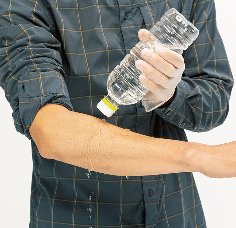しかし、絆創膏では覆えないほどの広範囲を負傷した、負傷箇所が土や砂などでひどく汚れている、見るからに大量の出血が確認できる場合などはどうだろう。