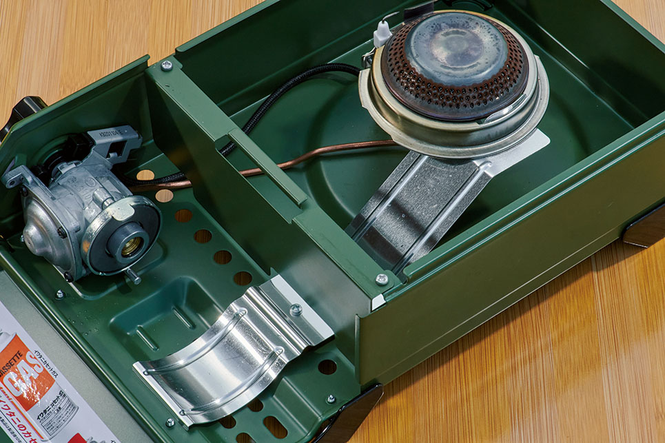 4本脚のため鍋の安定性はいいが、地面に置くことを考えると安定性に欠ける。できれば平らなテーブルや板の上で使ったほうがいい。コトコトと煮るにはトロ火が安定するマイクロレギュレーターが効く。圧電着火装置も付く、ワンバーナーの優等生。