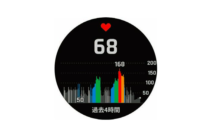 時計に搭載されている光学式心拍計で登山中の心拍を計測。心拍が上がりすぎないようにペースを管理することでバテない登山を