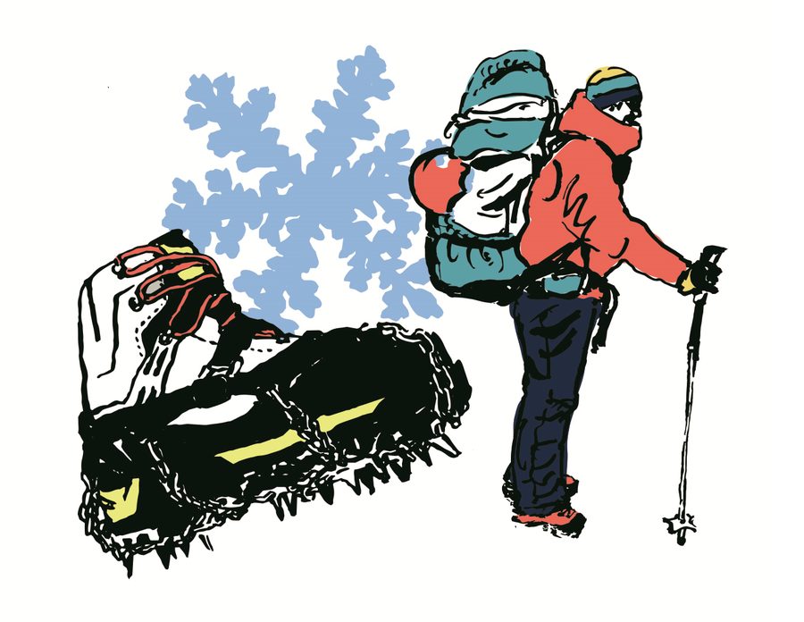 低山のちょっとした降雪や残雪期のアプローチなど、クランポンまでは必要でない状況で活躍する。