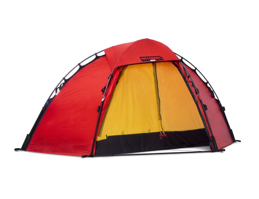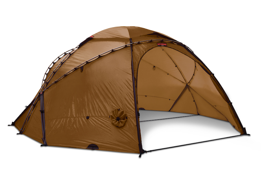 極地研究者のために設計された、ヒルバーグ最大の自立型シェルター。別売りのインナーテントなどオプションがそろい、前室の拡張、テントの連結など状況に合わせた使い方ができる。