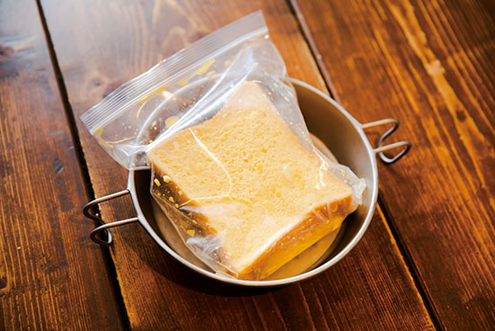 フレンチトーストといったら、キャンプでのスイーツ的立ち位置。でも、この甘くないバージョン、食事としてのポテンシャルがめちゃ高い!
