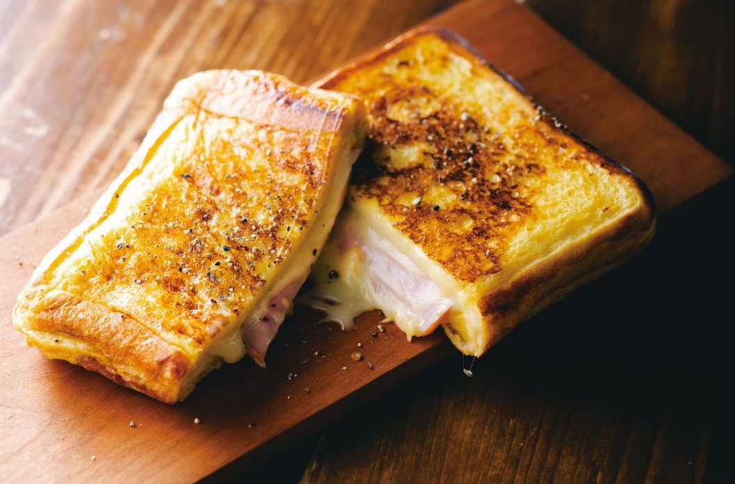 ③弱火でじっくり両面焼けば、お酒も進む甘くないフレンチトーストの完成。