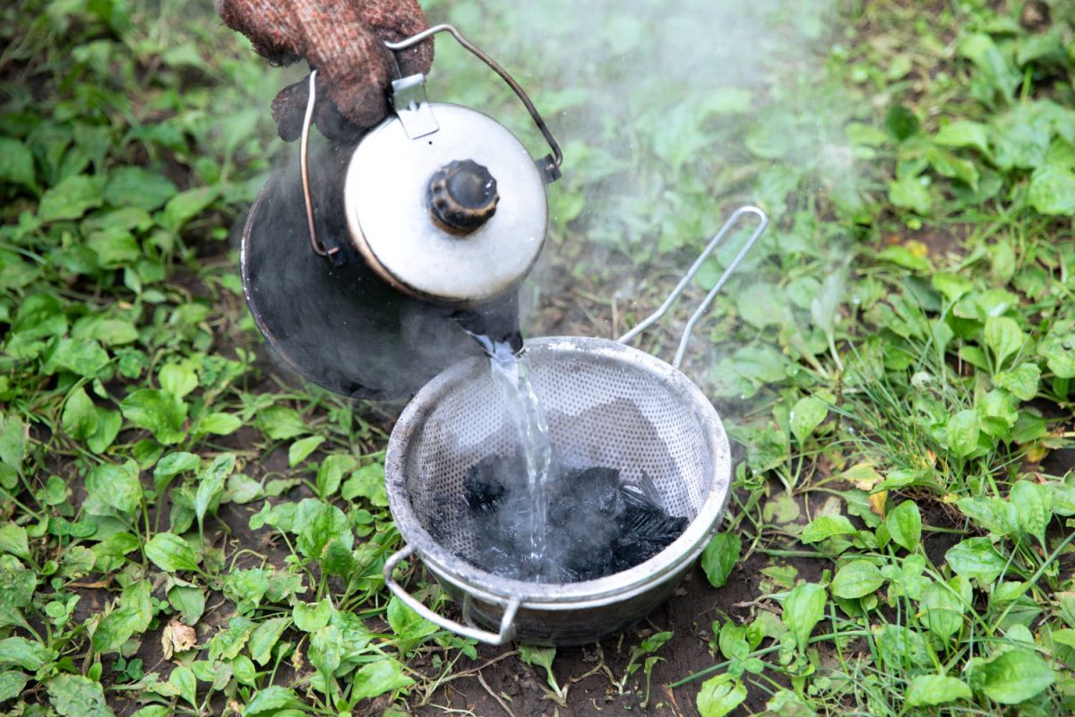 燃え残った炭は次回に再利用が可能だ。ザルやボウルなどに炭を入れ、水をかけて完全に消火(ヤケドに注意)。3分ほど置いて水を切り、ビニール袋などに入れて持ち帰り、完全乾燥させよう。
