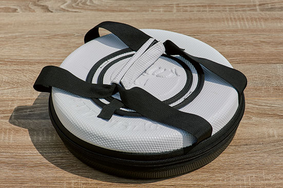 未使用時にはコンパクトになるソフトクーラーの利点をそのまま示すかのようなアイテム。押しつぶすようにして圧縮すると高さ8.5㎝までコンパクトになるのが大きな特徴。