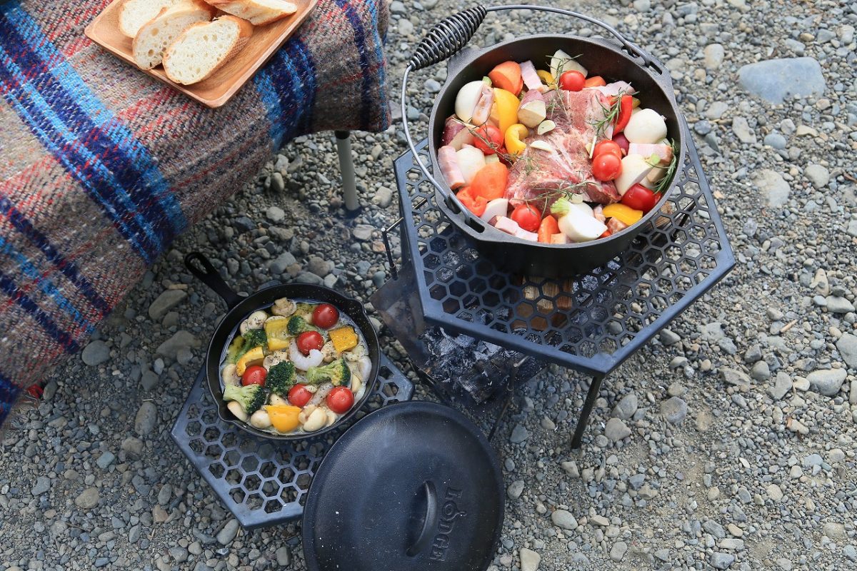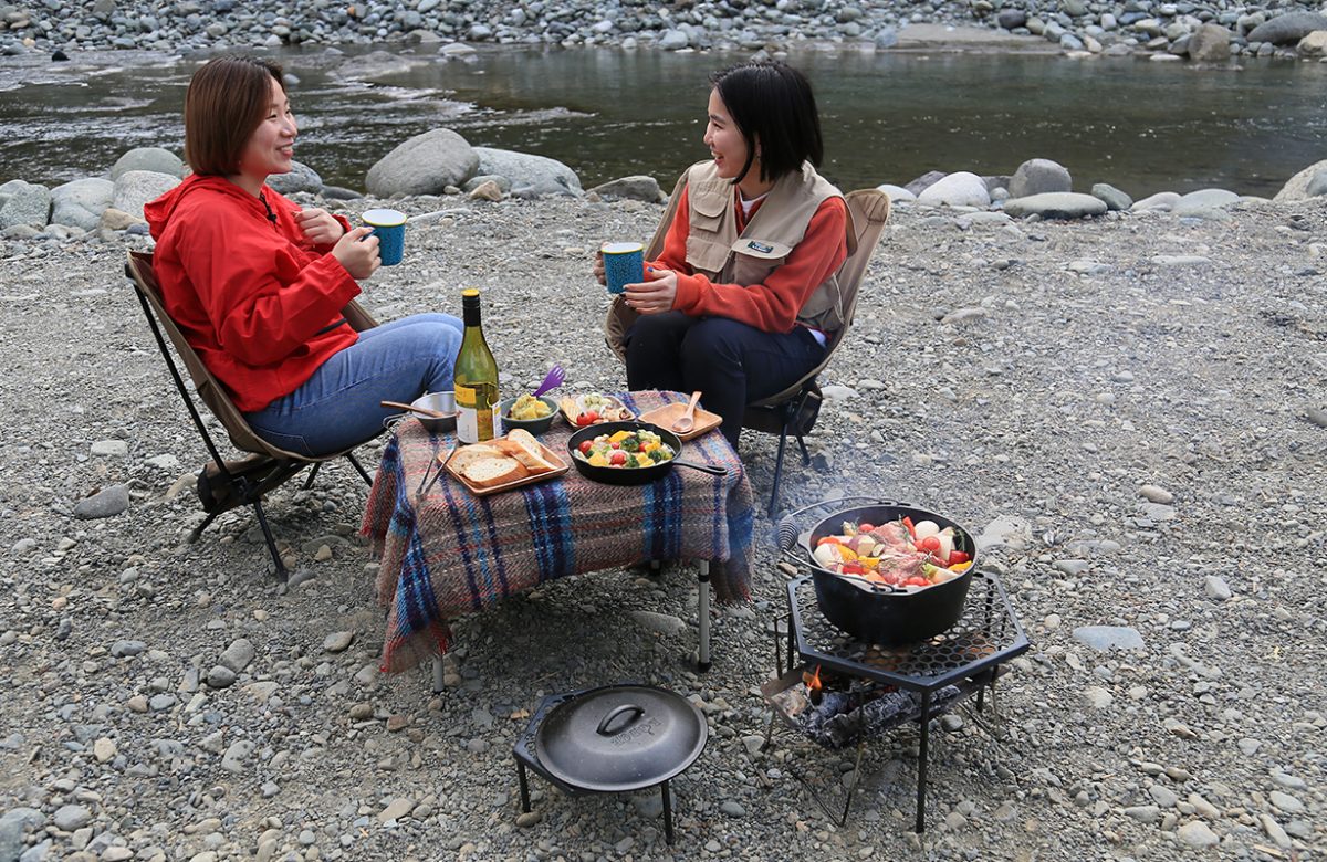 「よく会社の仲間とキャンプするのですが、やっぱり女子は”映え”が大切なので、料理には気合い入れて取り組みます! 最近ダッチオーブンの出番が減ってしまってたんですが、今回のハニカムテーブルならば、とひさしぶりに引っ張り出してきたら、相性バッチリです。このまま4時間じっくり火にかけたまま、のんびり休日を満喫しまーす」(キャンプ女子のプランナー・フクオカ&ヤスダ)