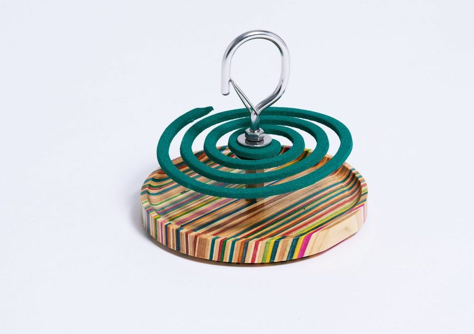 ペレグリンデザインとインテリアやお店の内装を手掛けるテンアートワークがコラボ。スケボーデッキの廃材を再利用し、1点1点ていねいに加工して製作された線香ホルダー。