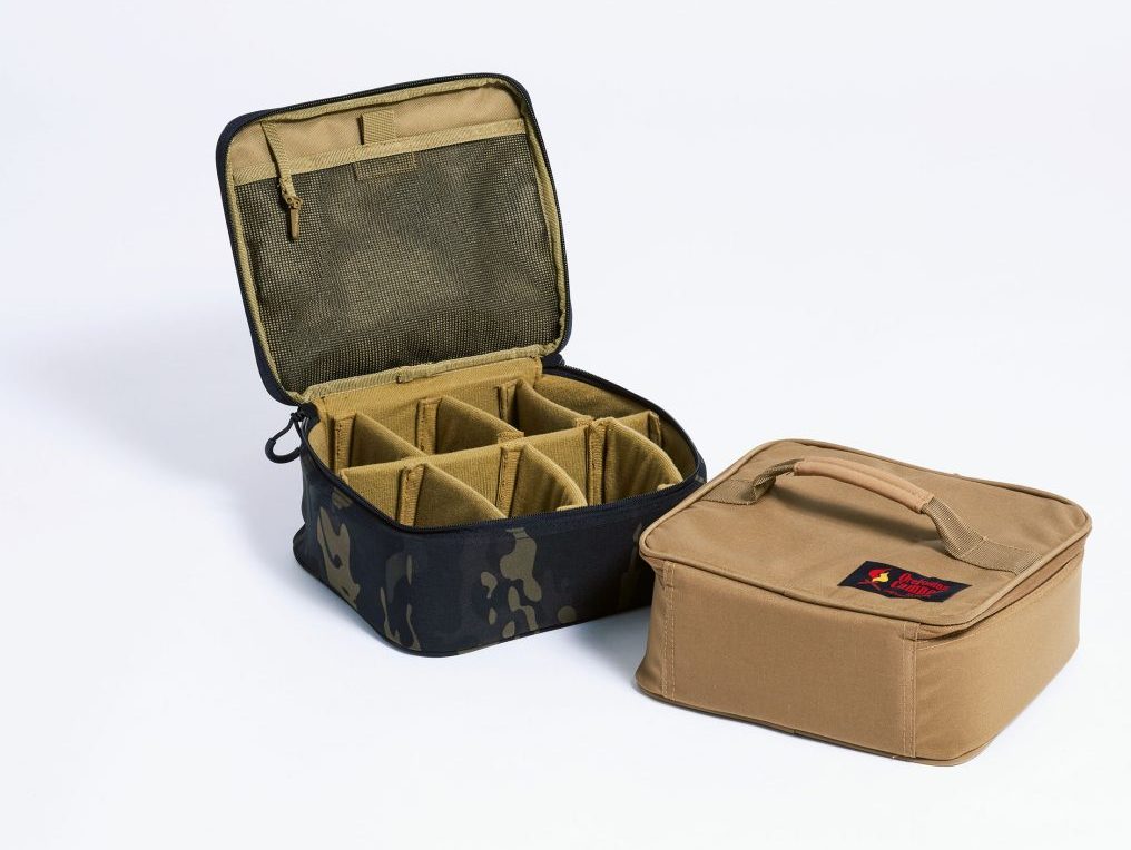 最大8ルームに小分けできる仕切り付きのギアバック。ガス缶やバーナー、食器など好きなようアレンジしてギアをまとめられる。フラットなため、バッグ同士を積み重ねられる。