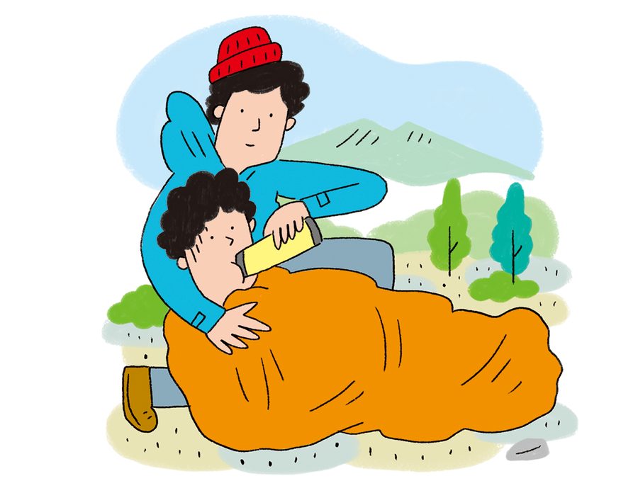 熱中症が考えられる場合は水分の補給や冷却、日陰へ移動させるなどを行なう。風や雨の場合は低体温症にならないようにエマージェンシーシートや寝袋で保温する。寒さを感じている場合には温かい飲み物を飲ませたり、すぐにエネルギーになる食事を与えるなど、状況によってできることが考えられる。ただし、例に挙げたのは一般的なもの。状況ごとに判断して、悪化させないように行動しよう。