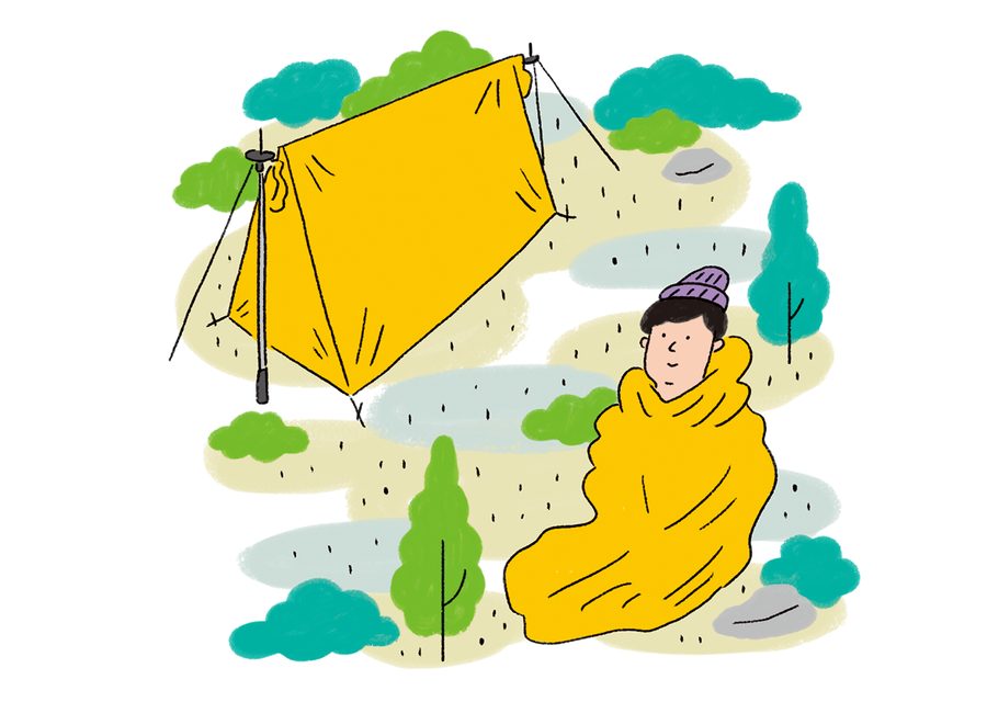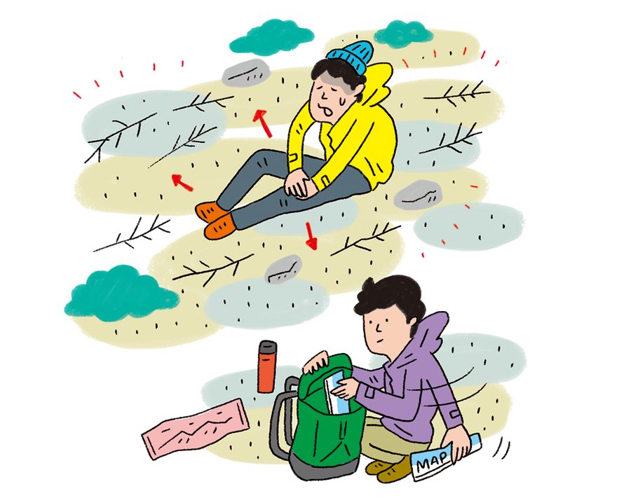 悪天候や遅い時間の事故発生などで、救助要請した日に救助できない場合もある。近くに山小屋があれば移動できるが、動けなければビバークの必要がある。日が暮れて暗くなる前に、自身の安全を確保し、持っている装備を活用してビバークしよう。寒さや雨の対策はとくに重要だ。しっかりとした装備を準備していることが、安全につながる。