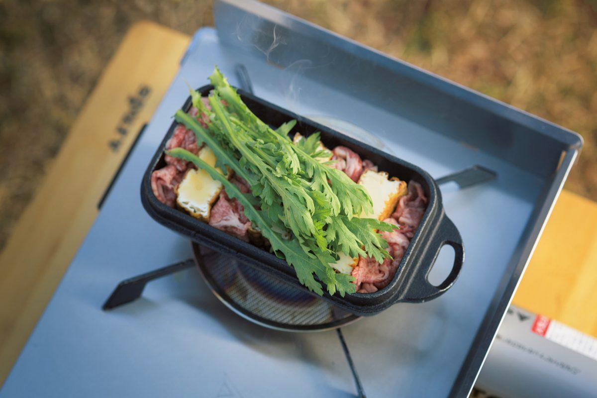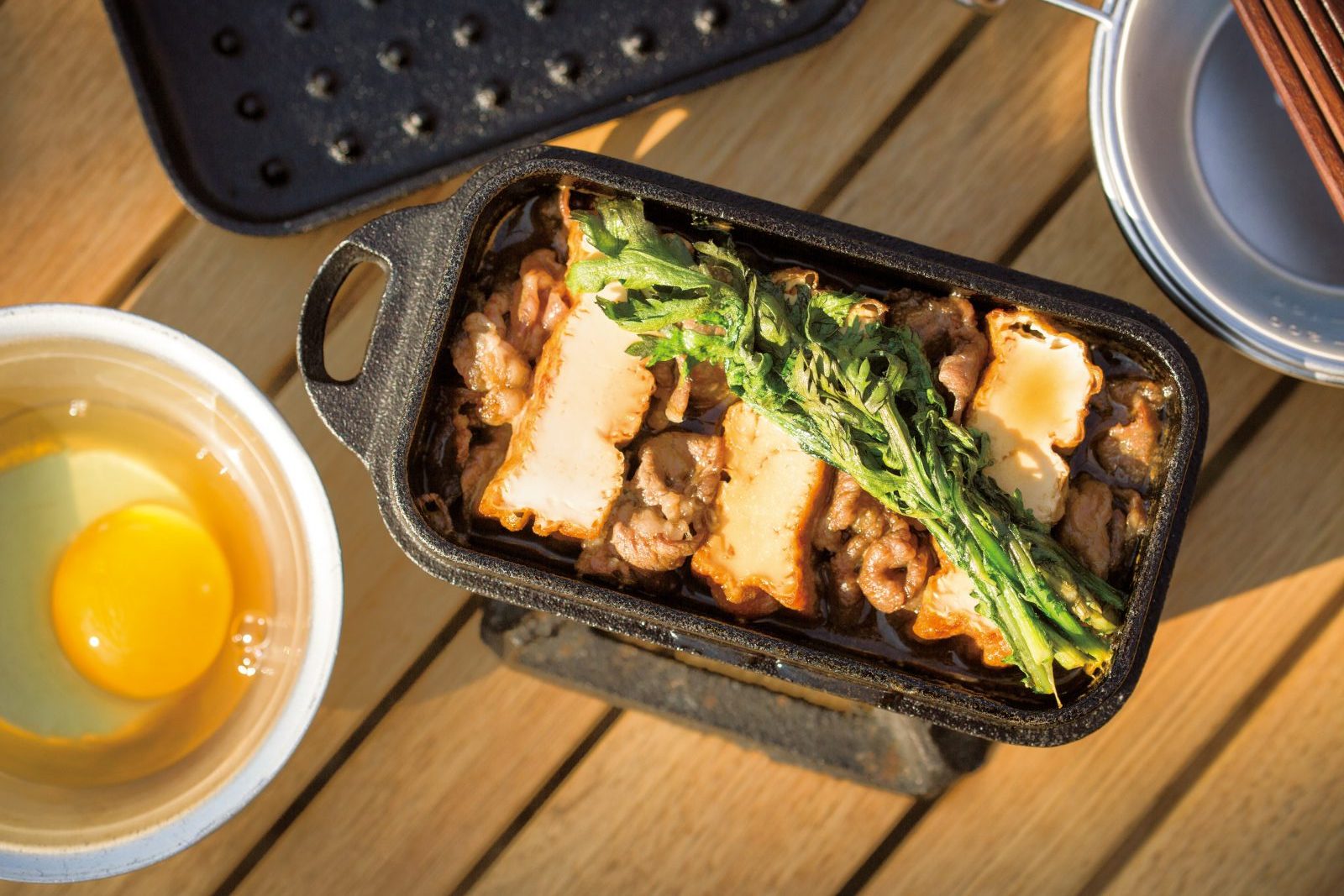 厚揚げの大きさと厚みは、このメスティンのサイズにぴったり。豪華な豆腐料理を作ろうと思い、すき焼き風に仕上げてみました。具材を入れて煮込むだけなので、外でも簡単に作れます。残った汁はうどんを入れたり、卵でとじて牛丼にもアレンジできます。