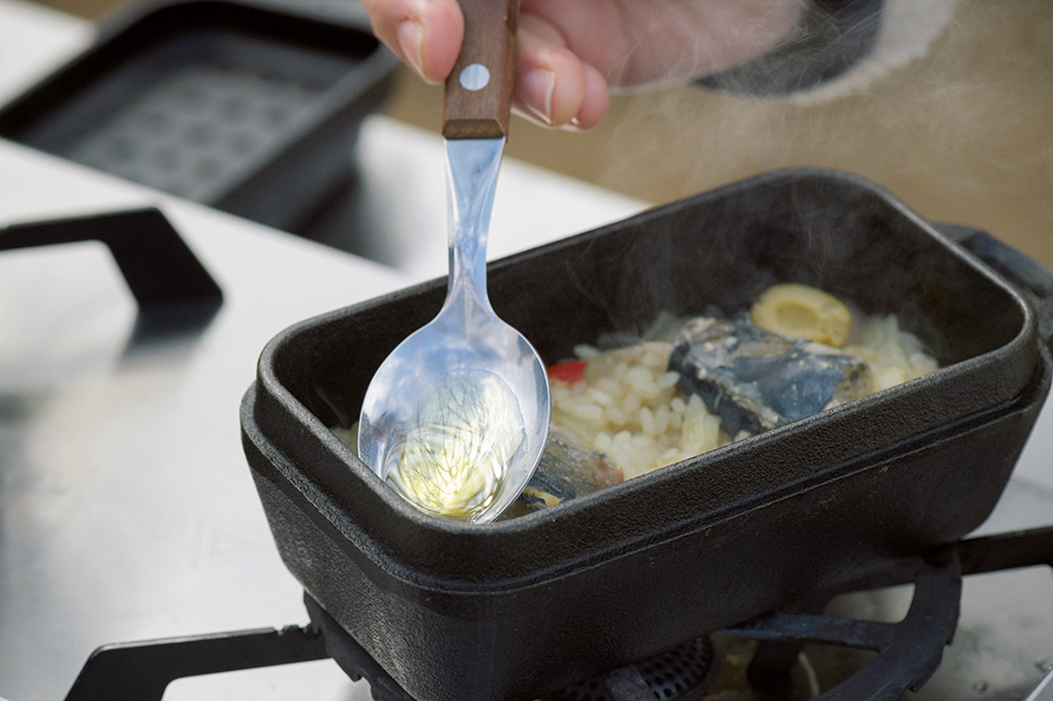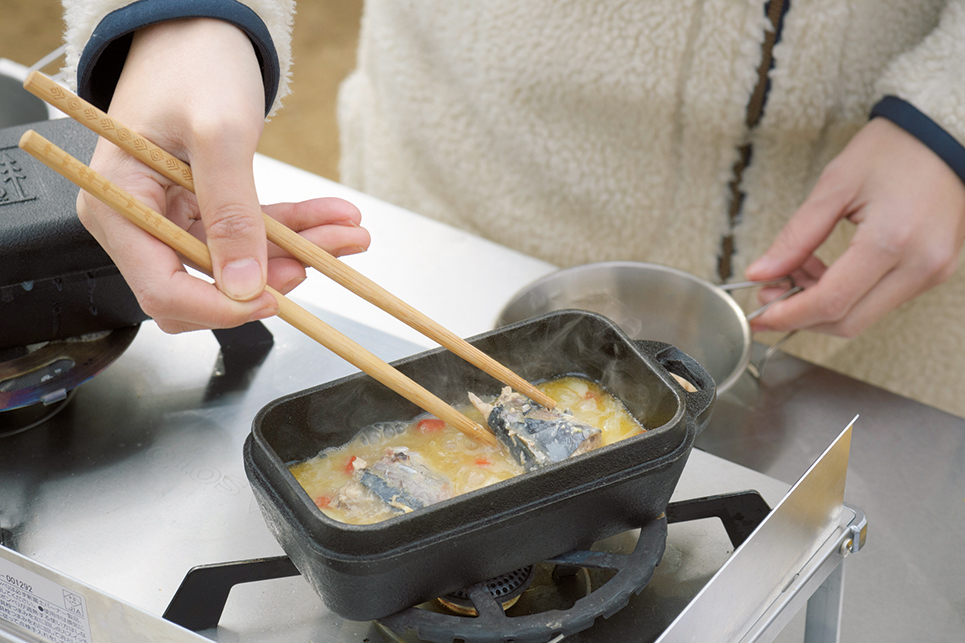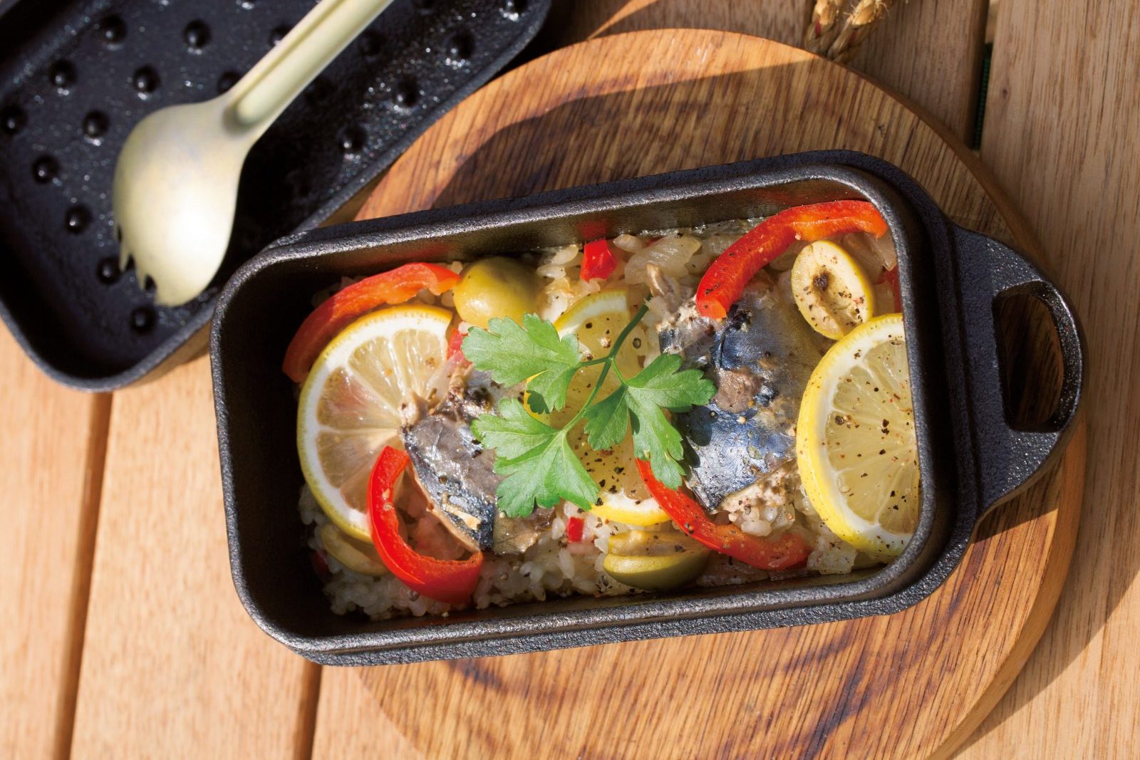 キャンプ飯には缶詰が便利。汁ごと使ってつくる鯖缶パエリア