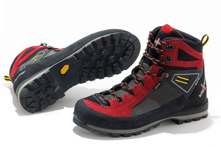 ライトアルパイン系はトレッキング系よりもさらに強靭で、アウトソールは固めで曲がりにくい。重量もかさみ、なだらかな登山道を歩くと疲れるが、急峻な岩場では滑りにくく、不整地でも体のバランスを保つ。森林限界以上の高山で頼りになるタイプだ。