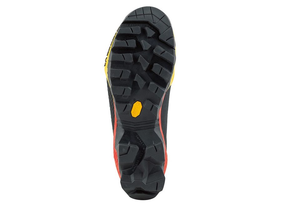 モデル名に入っている「SL」とはスーパーライトの意味。ライトアルパイン系で片足500g台は驚くべき水準で、スリムな形は岩場でも引っかかりにくい。アッパーに並ぶ三角形のプロテクターが強度を高める。
