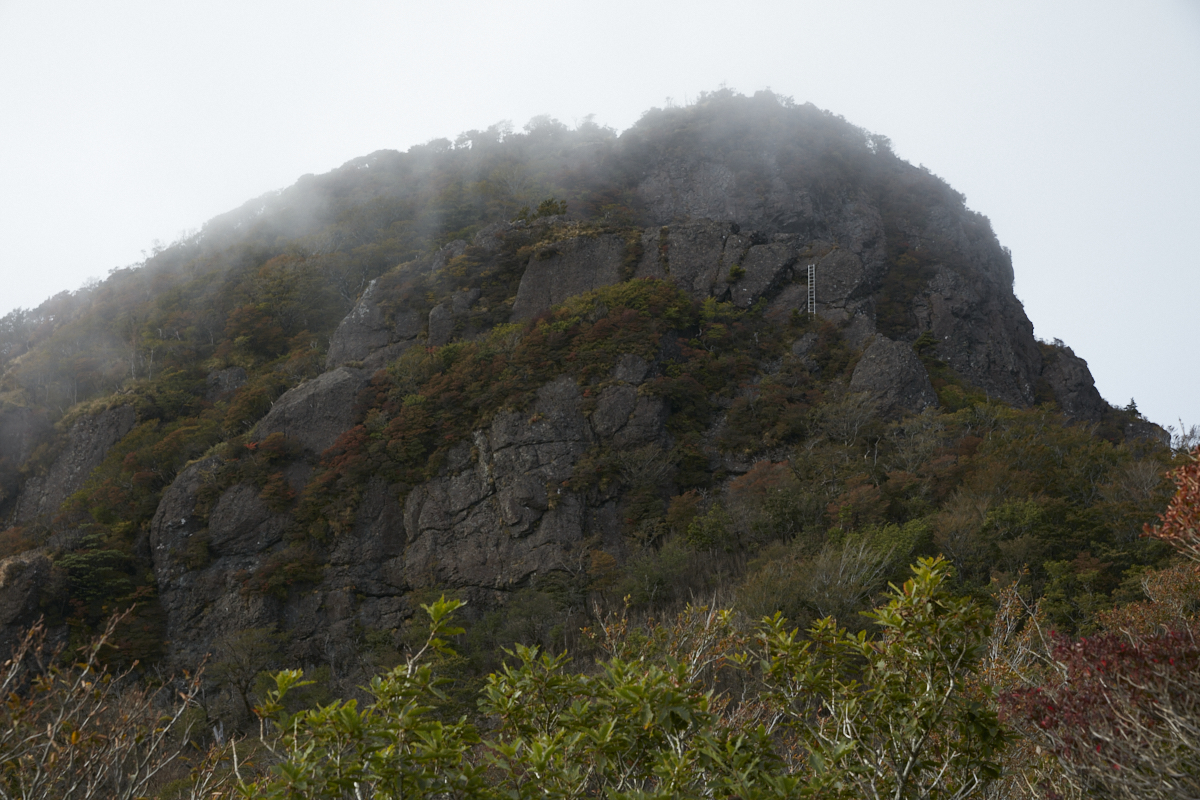 翌日向かう傾山を眺めるもガスで見ることはできず……。