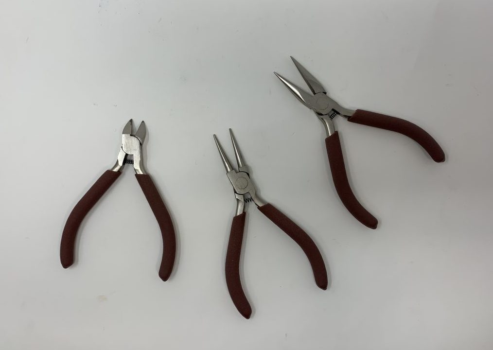 今回必要な工具は、アクセサリー用のヤットコ。小さなパーツを扱うMYOGにもおすすめのアイテムです。DIY工具にも同じ名前のアイテムがありますが、小さくやわらかいパーツを扱うには不向き。100円ショップでも見かけますが、安すぎるのもおすすめできません。アクセサリーパーツ専門店などをのぞいてほどほどの値段のものを購入しましょう。