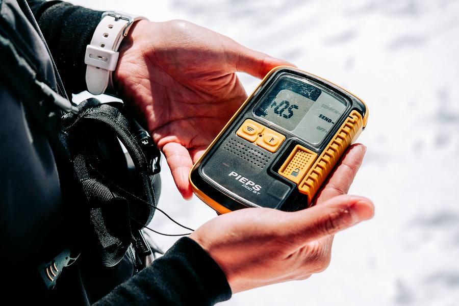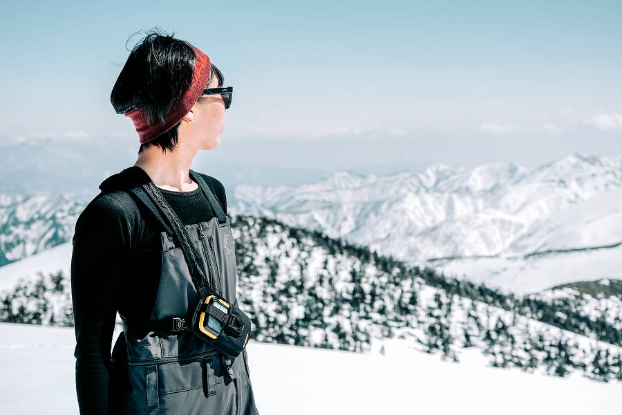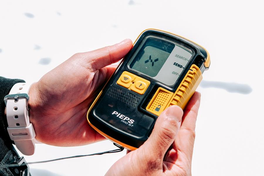 アバランチビーコンは操作性がよく、簡単であること。そして画面の視認性。また、行動中ずっと体に身に付けているものなので、着用感やじゃまにならない位置なども、ポイントかもしれない。