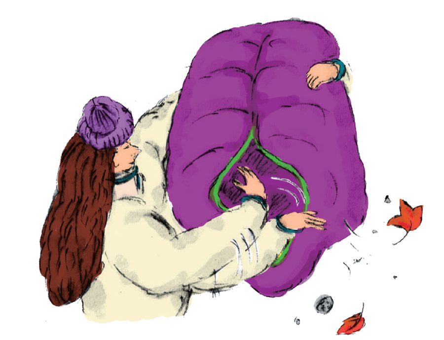 寝ている間に寝袋が含んでしまった湿気をとるのは、山のなかではなかなか大変なことだ。夏山の縦走などで天気がよくて、早朝に出発をしないのであれば、テントの上に乗せ、日に当てて乾かすといい。早めにキャンプ指定地に到着できたときも同様の乾かし方ができる。あとはベースキャンプで何泊かするような行程であれば、木と木の間に細引きなどを張って干してもいいだろう。自宅に帰ってからも、しっかりと干して乾かす。中込さんは日に当ててしっかり乾かすほうが好みだそうだが、紫外線による劣化などを考えると、生地を長持ちさせるためには日陰に干したほうがいいと話す。あとは寝袋を裏返し、中に入ってしまったホコリや汚れなども取り除くようにしよう。