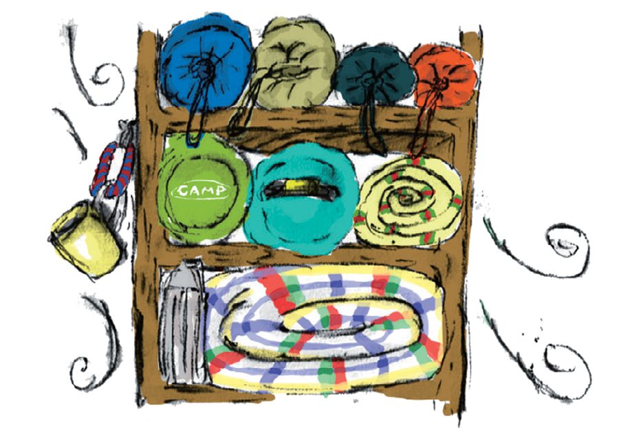 テントやマットは、スタッフサックに入れたままの収納で問題はない。なるべく日が当たらず風通しのいい場所に保管するようにしよう。寝袋だけはスタッフサックに押し込むのではなく、大きめのメッシュバッグ(付属される場合が多い)などに入れ、ダウンや中綿を圧縮しないように保管する。そのほうが保温性が保たれるのだ。