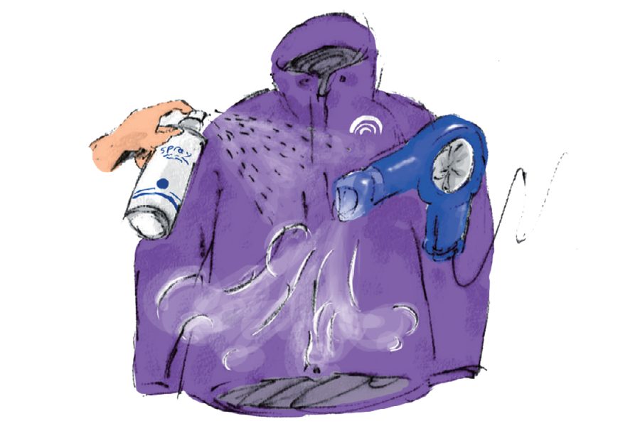 まずは乾燥機やアイロン、ドライヤーなどで生地に熱をあてて熱処理を試してみる。これで撥水性が戻らない場合は市販の撥水剤を使おう。スプレータイプは手軽だが、ムラになりやすいのが欠点。浸け置きタイプは手間がかかるが、撥水剤が、まんべんなく行き渡るので撥水性を長持ちさせられる。
