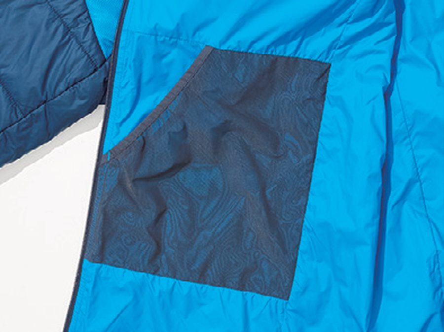 アウタージャケットの下で暖かさを提供する設計で、寒い時期には行動着としても活躍する。保温性と通気性のバランスを考慮して、脇下と背中には化繊綿の代わりにメリノウールの中厚手生地を組み合わせている。