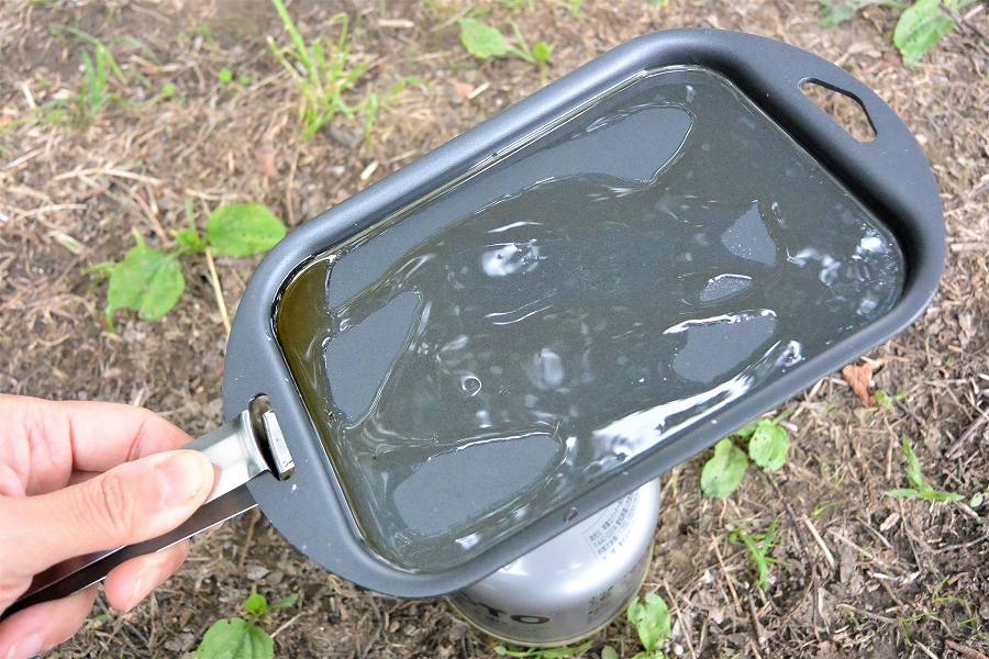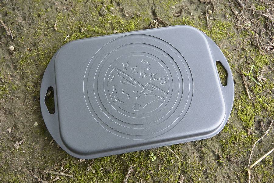 なんといってもマルチに活用できるのが、このアイテムの魅力。プレートの表面はクッカーとして、さらに裏返せばガスバーナー台に。ガス缶の大と小サイズに合うように溝が切られていて、それに合わせてガス缶を置けば、ズレることなく安定します。