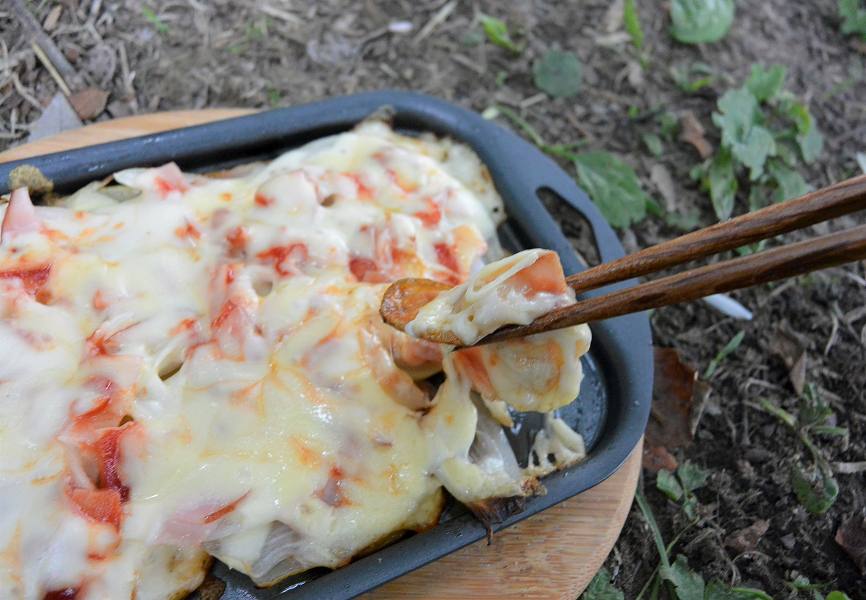 「マルチクッキングプレート」でつくる山ごはんレシピ①【簡単ポテトピザ】