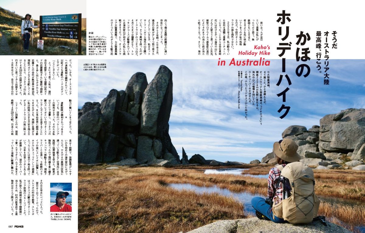 まずは人気Youtuberのかほさんが今号でも原稿を寄稿してくれています。テーマは、オーストラリア最高峰。