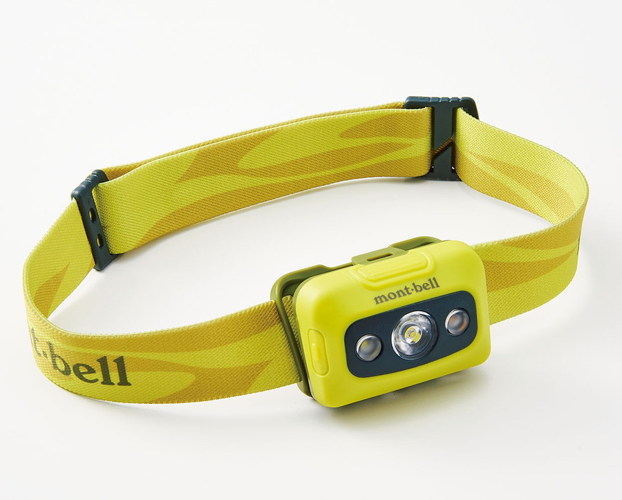 上下可動するヘッド部のベースがバンドと一体になっていて、フィット感が非常に高い。最大光量200lmは無段階調光でき、最大光量で点灯3時間、最長は40時間。デイハイクや山小屋泊用で活躍必至だ。