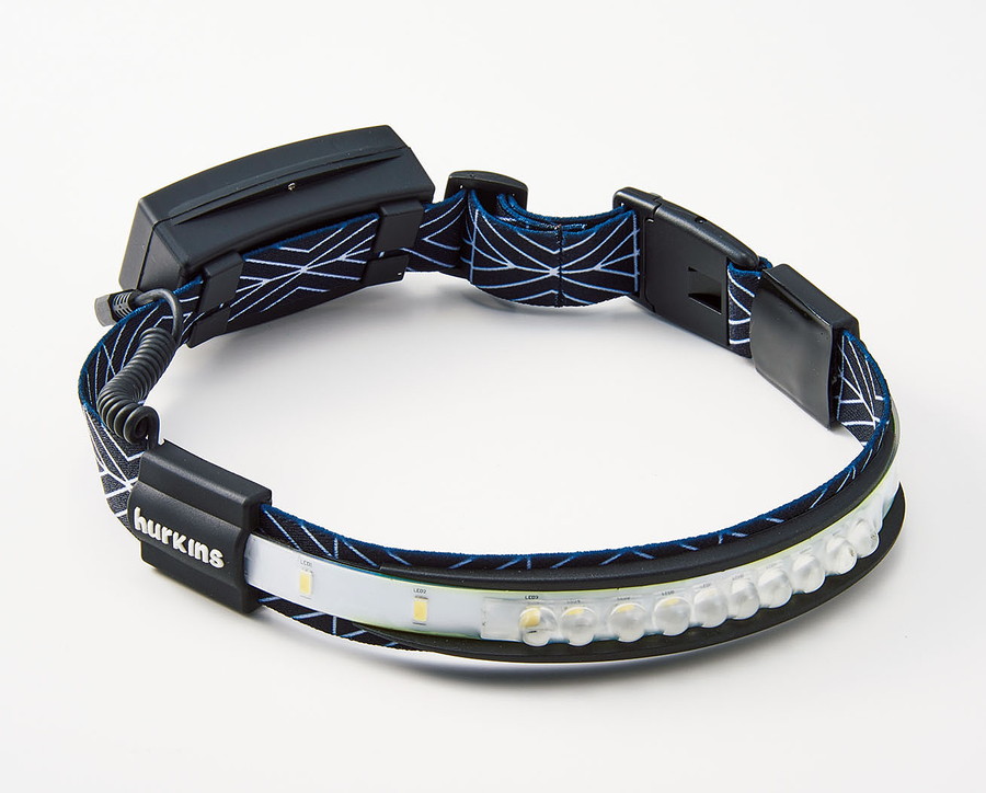 200lmで14時間点灯するライトは光のムラがなく、上部のボタン操作で光の角度調節も可能。読書灯、赤色灯も装備。シリコン製ベルトに包まれた本体は着脱でき、コードなしにUSB充電できる。デザインも秀逸。