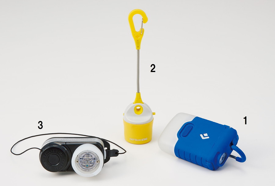 ボタン電池2個で、約4.5時間点灯。テント内の荷物整理時に点灯させるのがメインの使い方。吊り下げフックを装備するが、テーブル上に置いて、間接照明のようにも使える。おもしろさ重視のこんなランタンもあり!