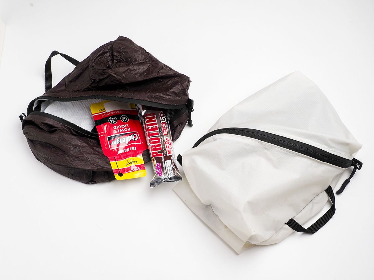 行動食入れとして愛用。サイズ感がちょうどよく、日帰りはもちろん、2泊くらいまでの山行ならこれひとつでいけます。行動食入れにはコンビニのレジ袋を使っている人も少なくないのですが、こういうポーチを使うことをぜひおすすめします。ガサガサ音がないしバックパックに出し入れがしやすいし繰り返し使えるし。