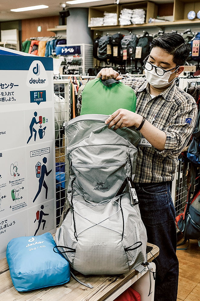 登山装備が軽くコンパクトになれば、収納するバックパックも小容量で軽量なモデルで十分だ。さかいやスポーツ「エコープラザ」の田中大亮さんに、軽量なバックパックを選ぶときの注意点と利便性を聞いた。