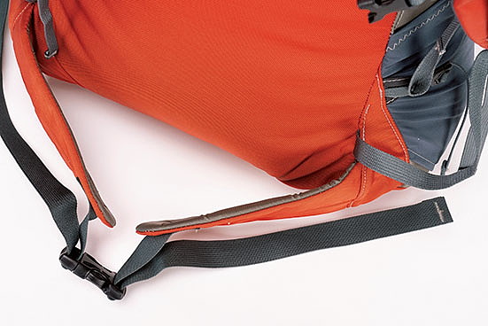 簡素なヒップベルトを採用することも多い。重厚なヒップベルトが備わる大型パックのように、腰荷重で背負うことは期待できない。