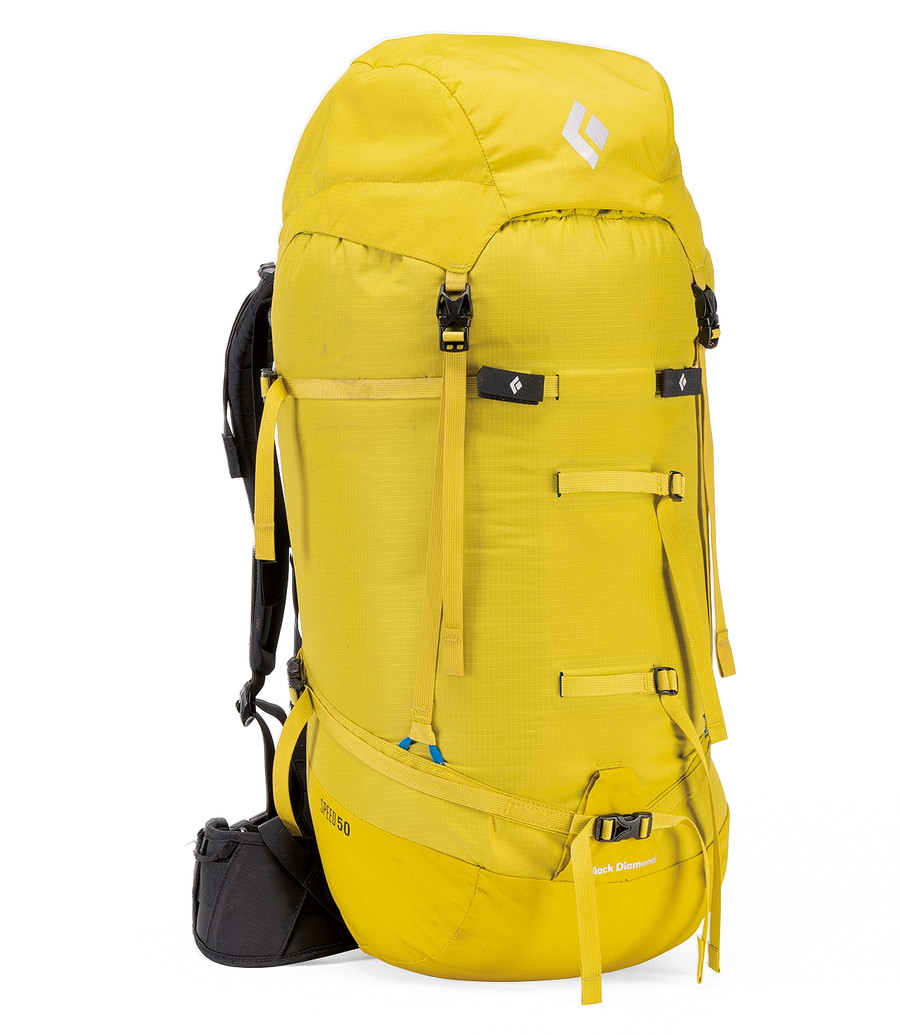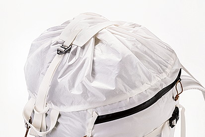 引き裂き強度に優れることで知られるナイロンスペクトラリップストップ素材を採用することで、非常に耐久性に優れたアルパインパックが完成した。バックパネルやアルミフレーム、ヒップベルトなどを取り外して、さらなる軽量化を果たすこともできる。