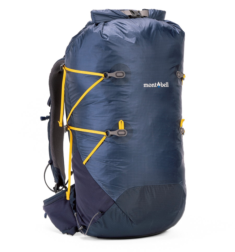 縫い目にシームテープ処理をした、高い防水性の内袋を内蔵。二重構造になったファストパッキングモデル。ショルダーハーネスやヒップベルトにジッパーポケットを備え、軽量化のため横方向に配置されたアルミステイによってたしかな背負い心地を実現した。