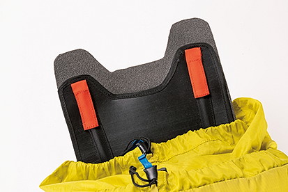 2本のアルミステイを内蔵した背面パネルは素早く着脱ができるので、マットとして使ったり、軽量化も簡単にできる。