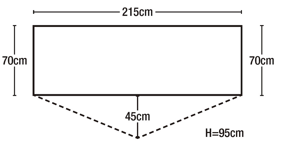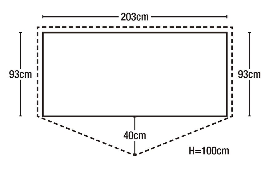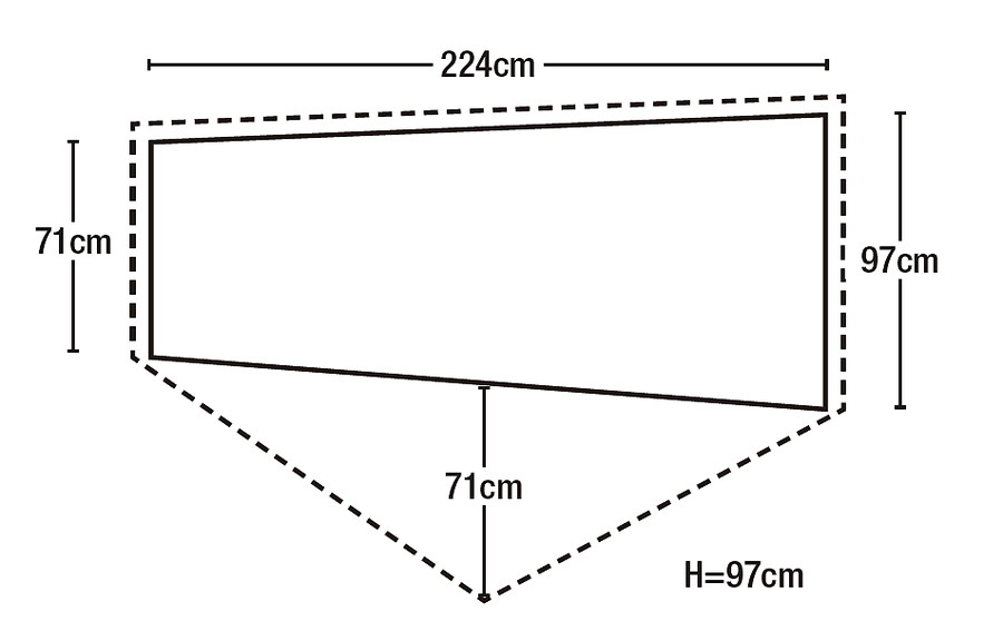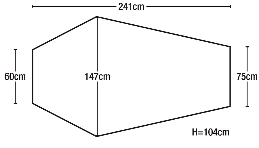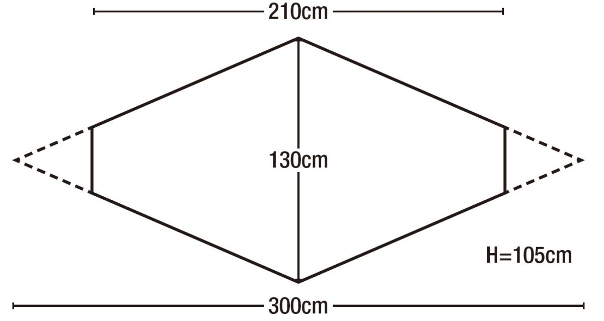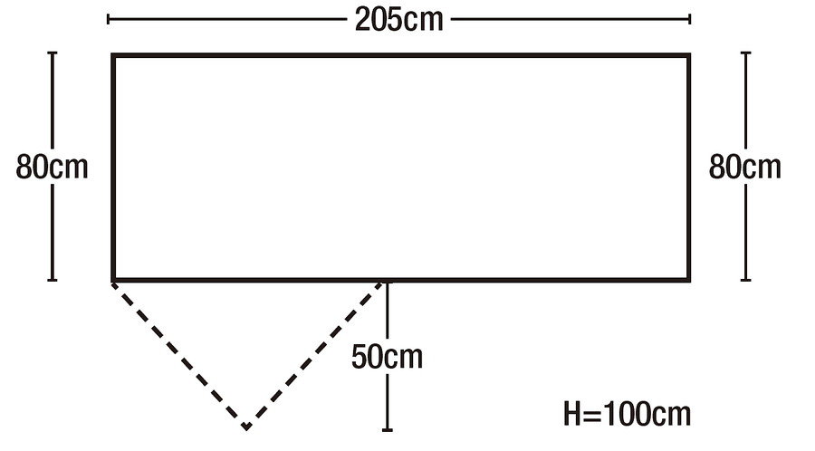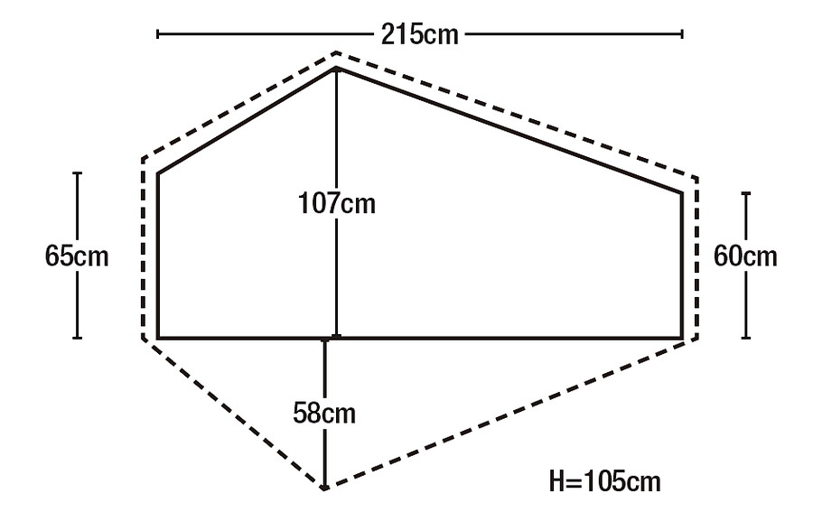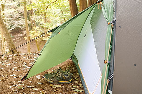 入口から見て左側の短辺の外に荷物を置ける前室がある。登山靴や使わないクッカー、火器などを外に出せる。