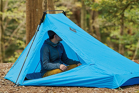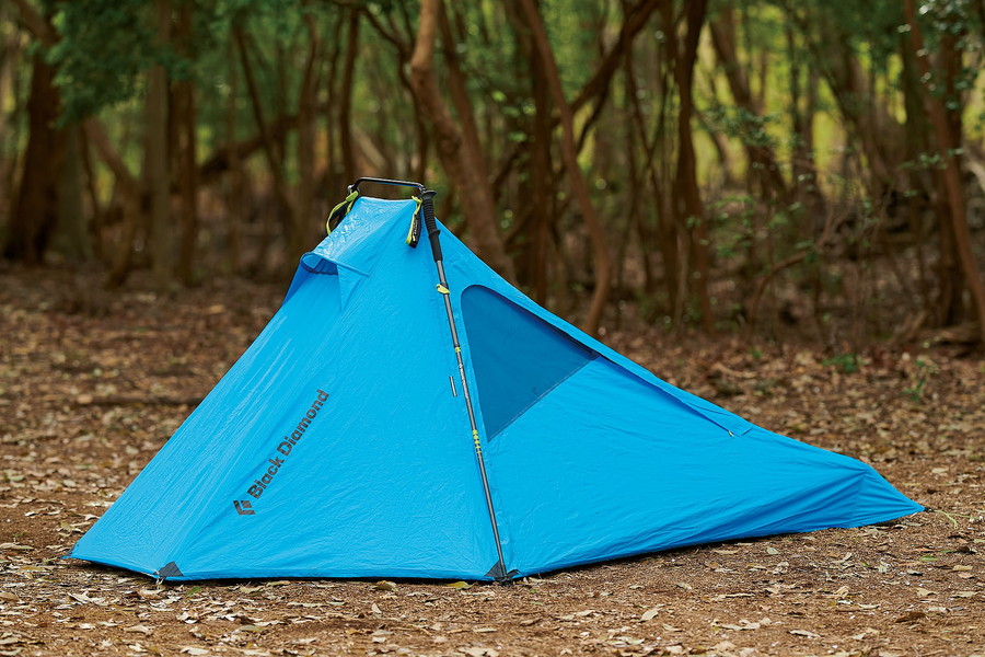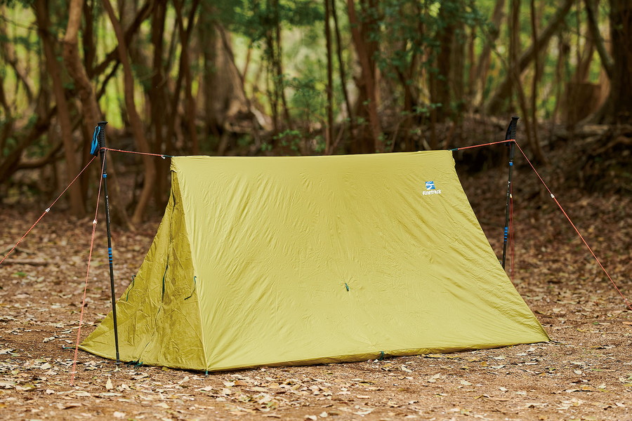 トレッキングポールを使って設営する知る人ぞ知る軽量テントの名品